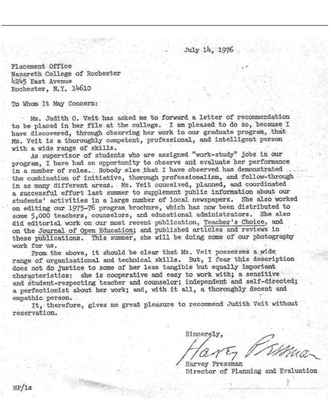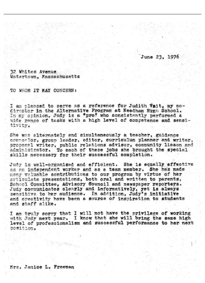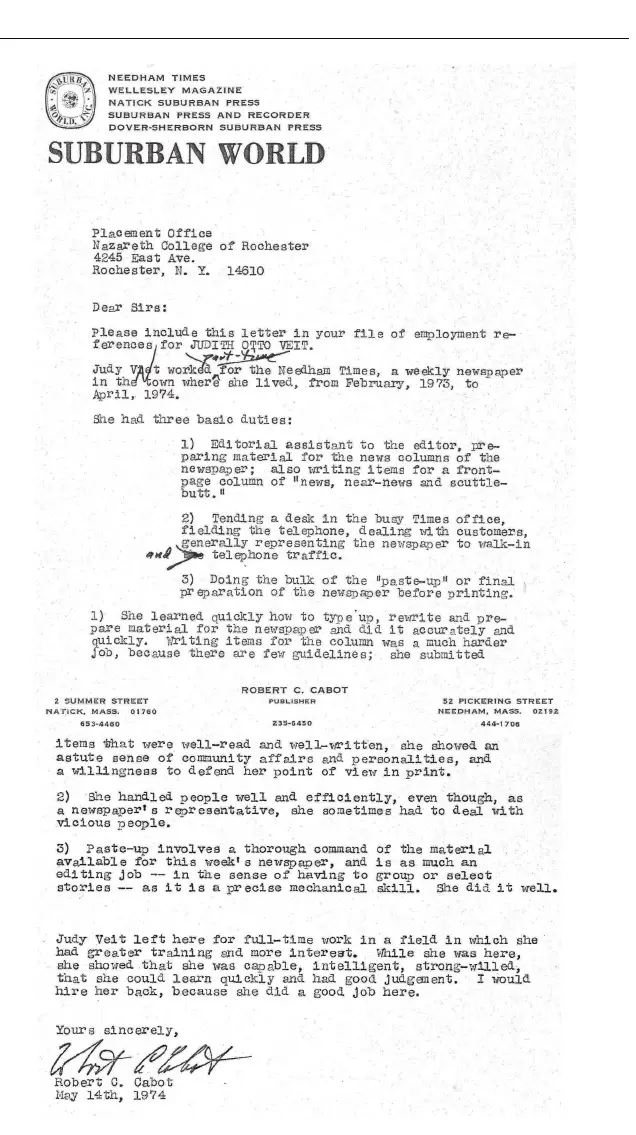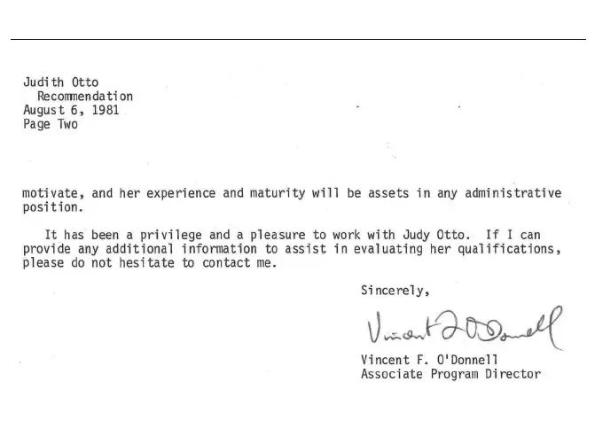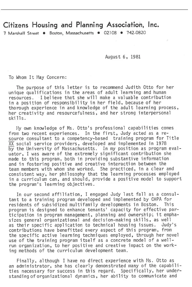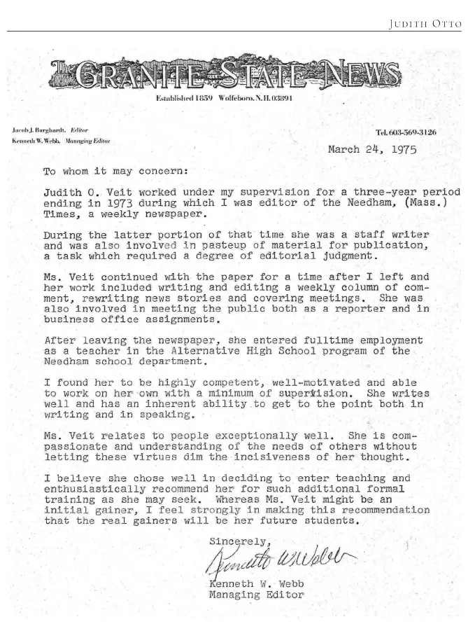 Editor’s note: These letters are included to illustrate Judith Otto’s work and for the motivational benefit of her grandchildren. I imagine her copying these letters on a Xerox machine at a public library, carefully folding them into an envelope with a cover letter and perfectly typed resume, evenly affixing a stamp, and sending them off to potential employers.